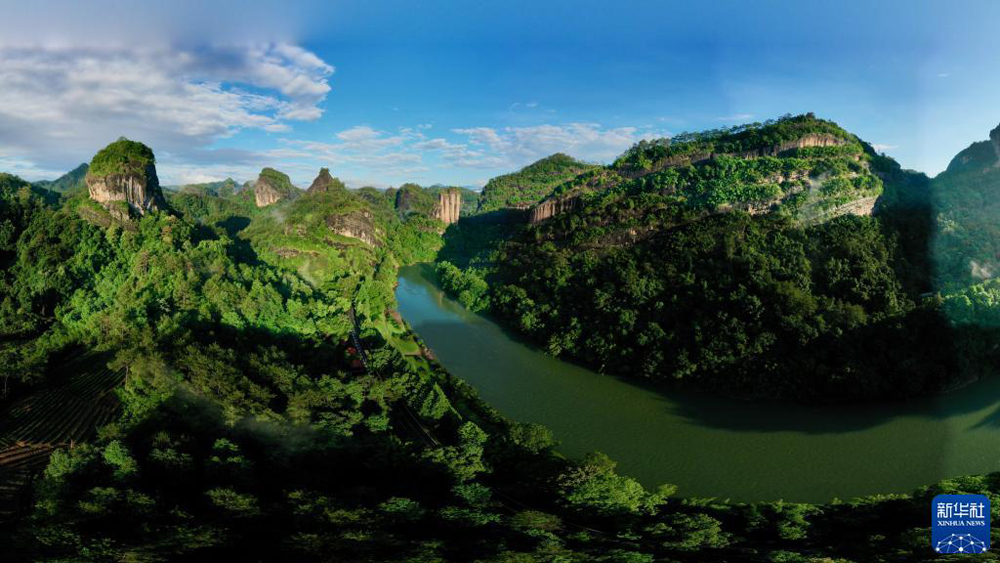 这是武夷山国家公园九曲溪两岸景观(66日摄,无人机照片)。新华社记者 姜克红 摄