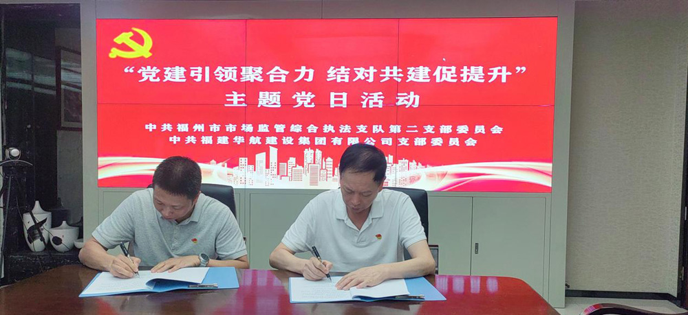 随后,华体网党支部书记张华官与福州市市场监管综合执法支队第二支部书记李芳辉共同签署《党组织结对共建协议书》。党员们纷纷表示,党的二十大报告对第二个百年奋斗目标作出了具体的安排,任务已经明确,方向指引道路。两个支部将在接下来的共建活动中,紧密结合工作实际,以强烈的责任担当,推动党的第二个百年奋斗目标早日实现!